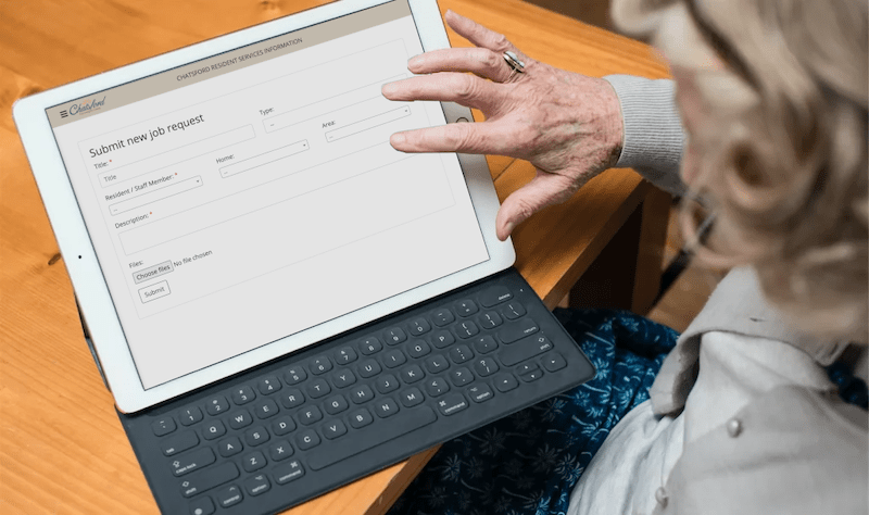 The process of distributing paper-based information and calling the office for maintenance requests was time consuming, and Chatsford wanted to go digital. One of the key requirements for the solution was to build a simple interface that was easy to use and understand for the elderly living in the village.